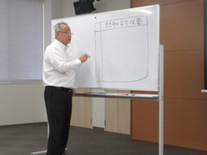 今回は、事前研や授業研、事後研の進め方について松本教育長の講義を聴き、授業者が実践してよかったと思える校内の研修について参加者も共に考えました。